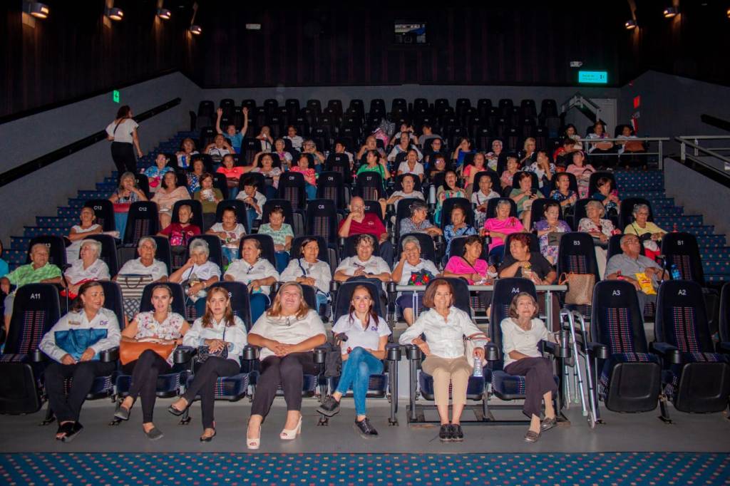 a integrantes de las Casas del Adulto Mayor Activo una función de cine con el apoyo de la cadena “Cinépolis Campestre”, fomentando así la sana convivencia entre las y los