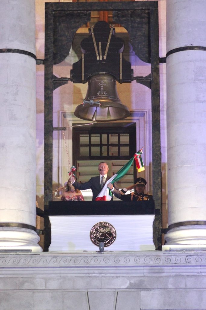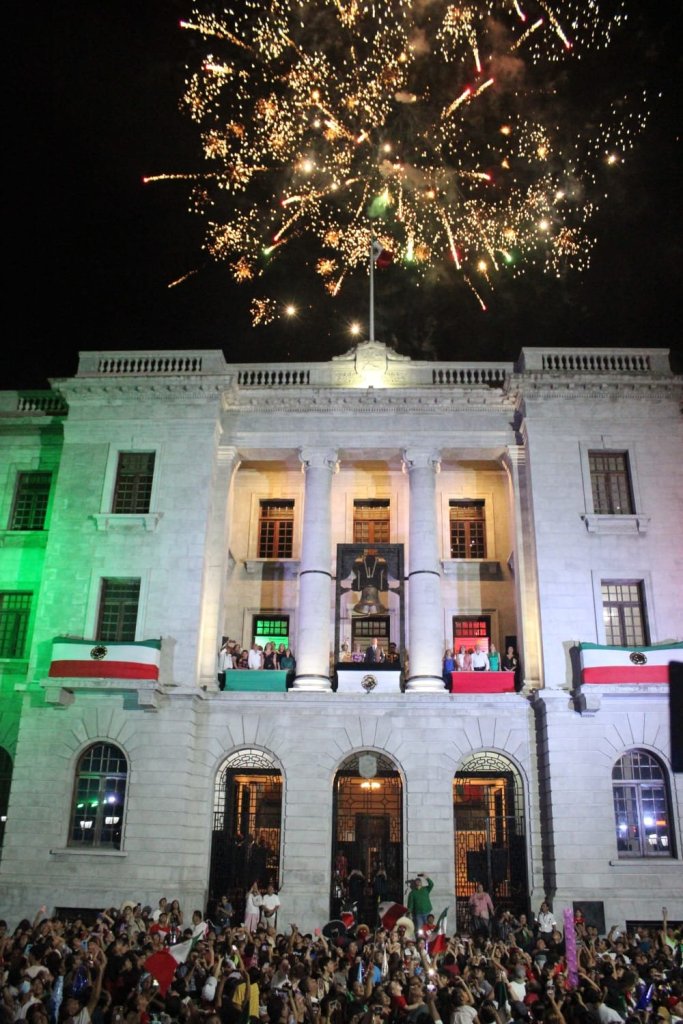 Tras ondear la bandera y repicar en ocho ocasiones la campana de la sede de gobierno, el edil entregó la enseña nacional a la escolta del Ejército Mexicano, mientras la multitud se deleitó con un extraordinario espectáculo de fuegos artificiales, seguido de un monumental programa musical encabezado por el grupo Consorcio Estilo Latino.