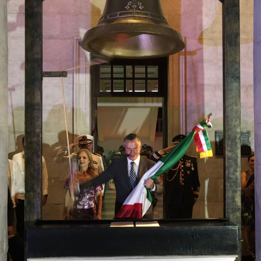 En punto de las 23:00 horas, y luego rendir honores al lábaro patrio, que le fue cedido por la escolta del quinceavo Batallón de Infantería, el Jefe de la Comuna se dirigió al balcón principal, acompañado de su esposa Aída Féres de Nader, Presidenta del Sistema DIF y por integrantes del Cabildo, para dirigirse a la multitud y recordar a los héroes que lucharon por la libertad y la soberanía nacional.