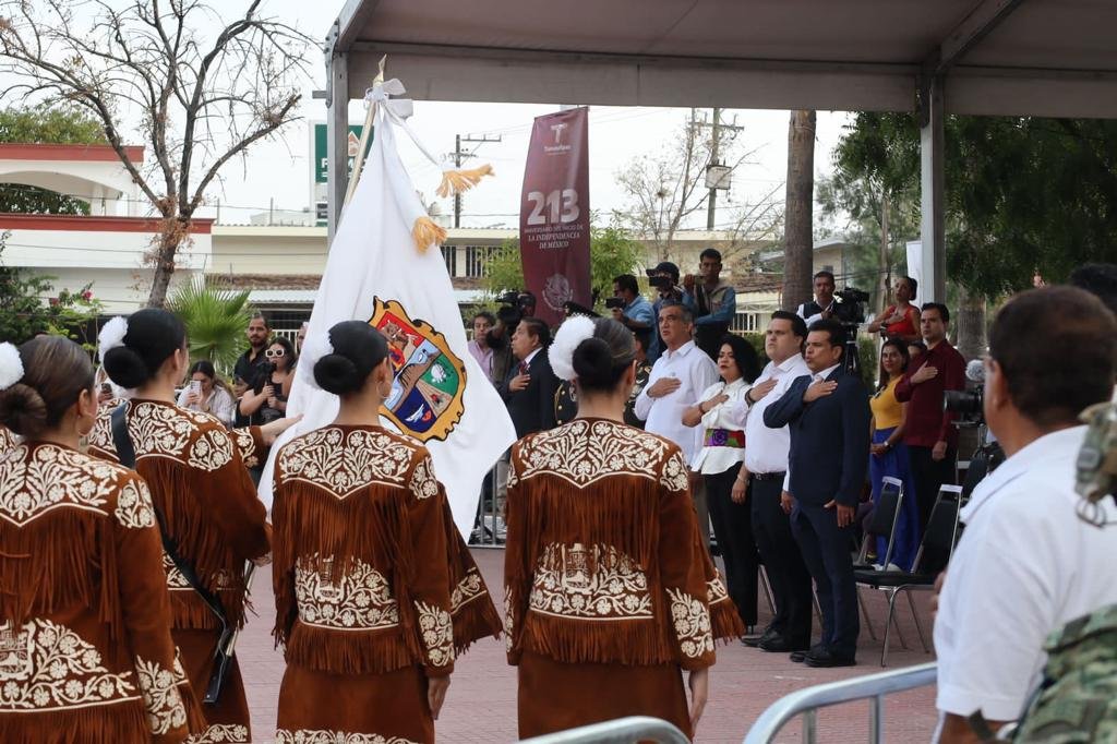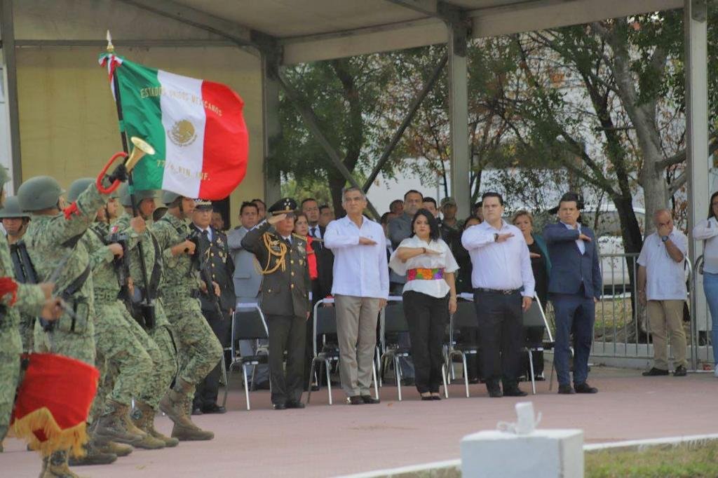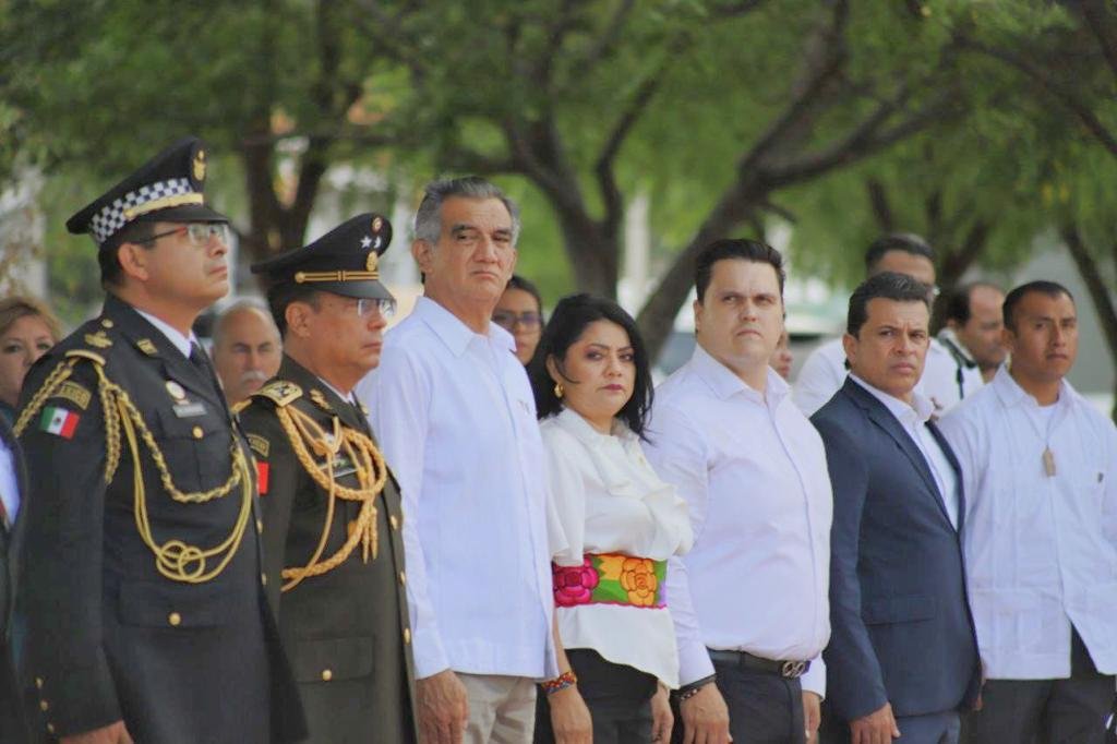A temprana hora acompañó al mandatario estatal y comandante de la 48va Zona Militar, vicealmirante Gabriel Pablo González Contreras, al monumento de los Héroes de la Independencia dónde depositaron ofrenda floral y montaron guardia de honor.