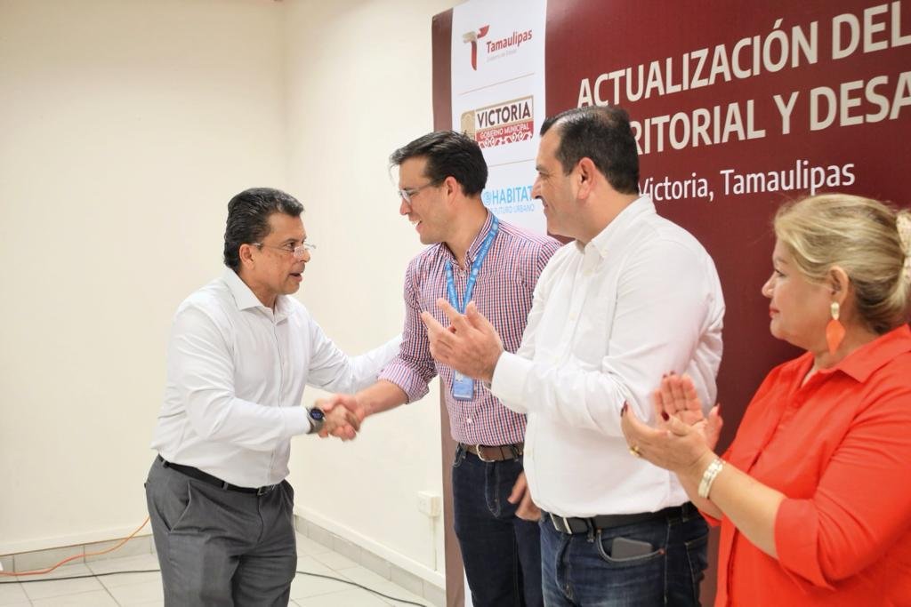 Agradeció a Eduardo Torres Rojas y Juan Manuel Campa, analistas para el Desarrollo de Programas y Proyectos ONU-HABITAT y del INFONAVIT, la asesoría brindada en los foros ciudadanos para conocer propuestas y soluciones para el ordenamiento urbano de la ciudad por parte de actores académicos, iniciativa privada y sociedad civil de la Capital del Estado.