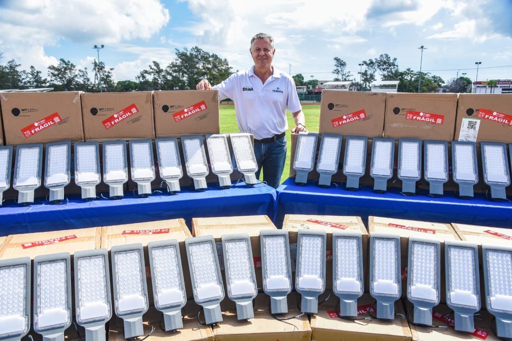 «El día de hoy estamos entregando 500 nuevas luminarias led de 50 watts cada una, provistas con fotocelda para el encendido programado, las cuales serán destinadas a la reposición en las colonias y sectores donde hagan falta; así como para contar con el suministro necesario para atender las peticiones ciudadanas», explicó.