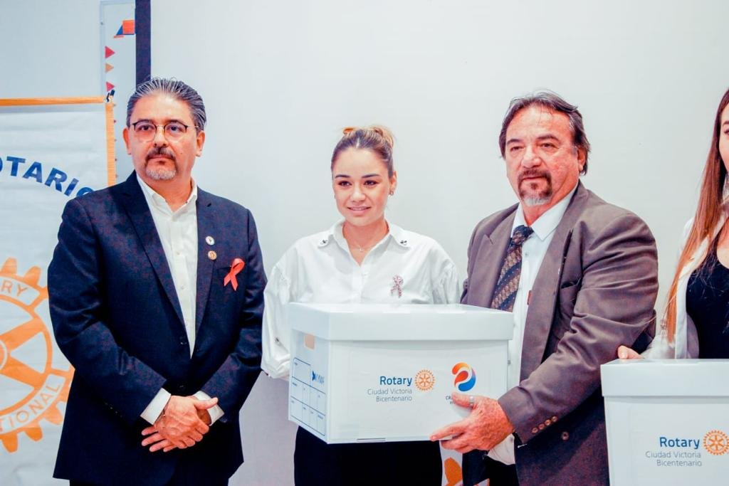 Por su parte, integrantes del Club Rotario realizaron también la entrega de un donativo de material a la UNEME DEDICAM para la elaboración de prótesis de mama.