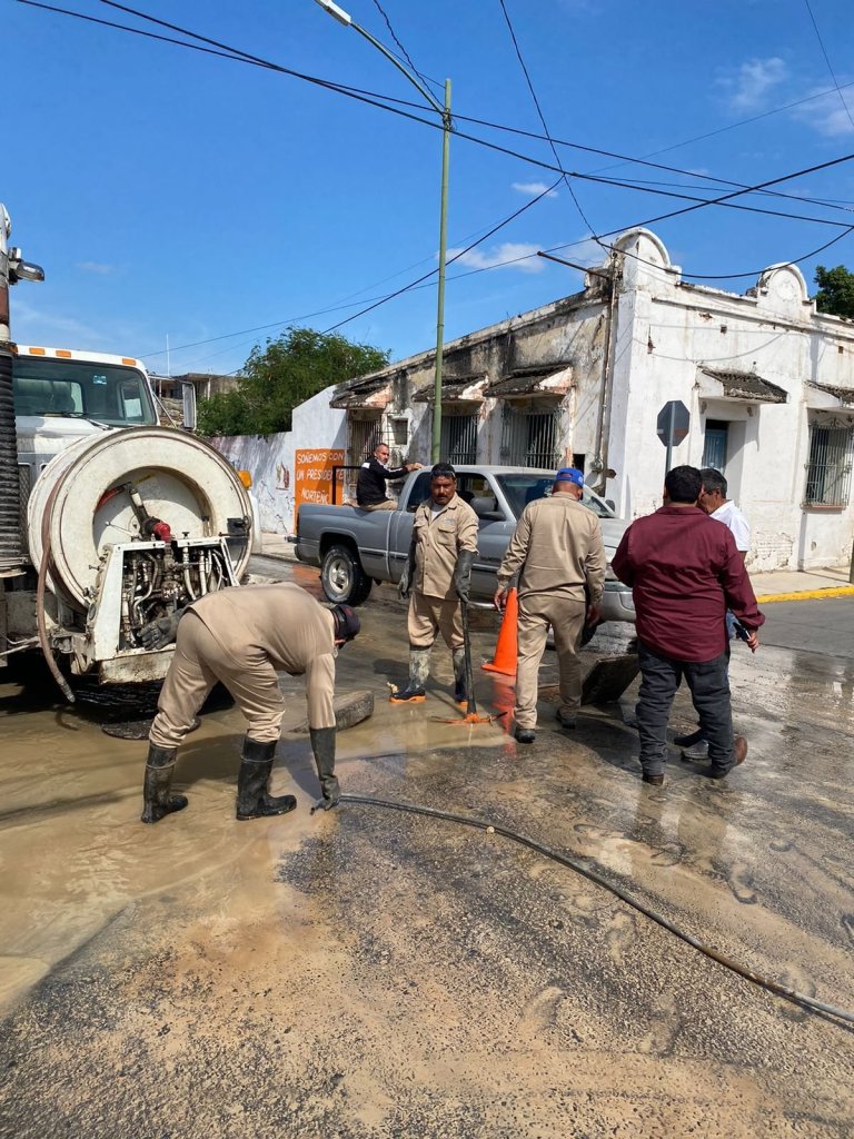 Con apoyo del camión vactor, el personal de saneamiento se encuentra atendiendo el derrame de aguas negras en el 22 Zaragoza, mientras que con maquinaria pesada se trabaja en la reubicación de la línea general de drenaje en calle Esfuerzo esquina con Bachilleres en la Col. Unidad Modelo, trabajos que se continúan realizando para solucionar el derrame en calle Camino del Pueblo en la Col. Casas Blancas en donde se tienen que rehabilitar 300 metros lineales de red de drenaje sanitario.