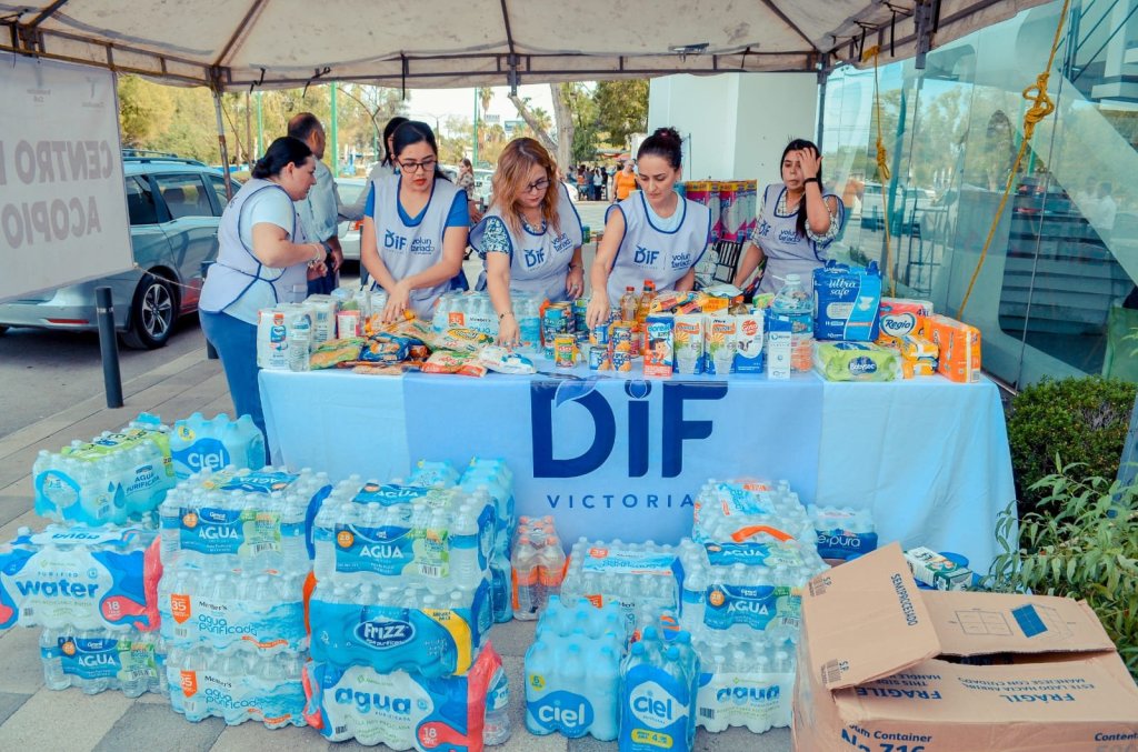 Cd. Victoria, Tamps., 10 de noviembre. – En un acto de empatía y solidaridad, el Sistema DIF Victoria, en colaboración con la sociedad victorense, recaudó y donó importante cantidad de víveres en apoyo a las familias del Estado de Guerrero.