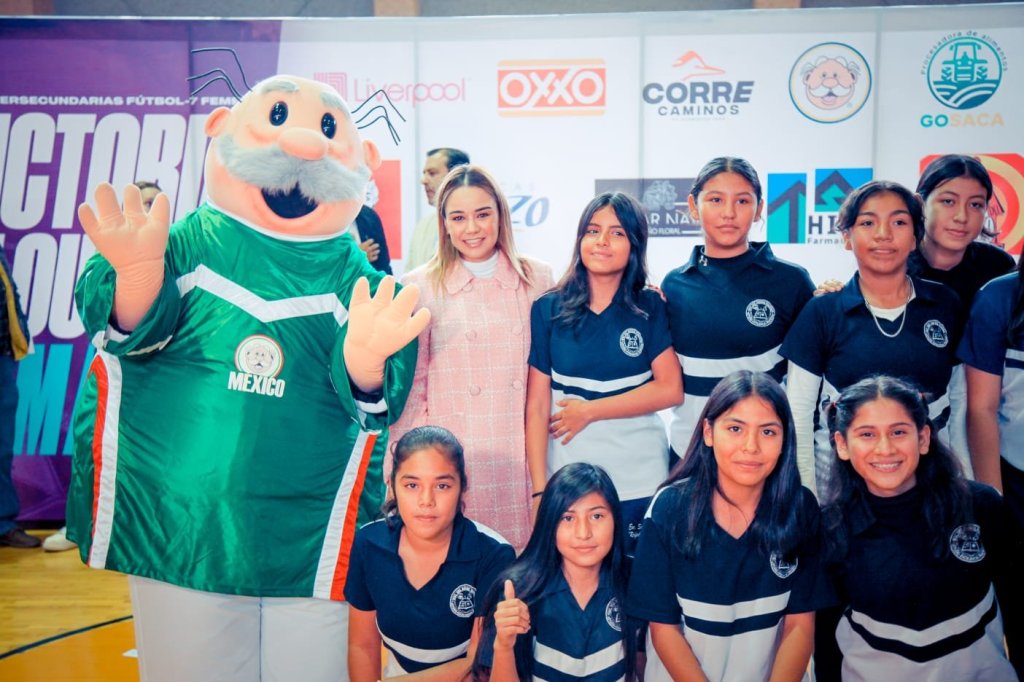 Cd. Victoria, Tamps., 13 de noviembre. – Con el objetivo de impulsar el deporte y la sana convivencia entre la juventud, la presidenta del Sistema DIF Municipal Lucy de Gattás inauguró esta mañana el torneo Fut7 Femenil Intersecundarias “Te Quiero Más”.