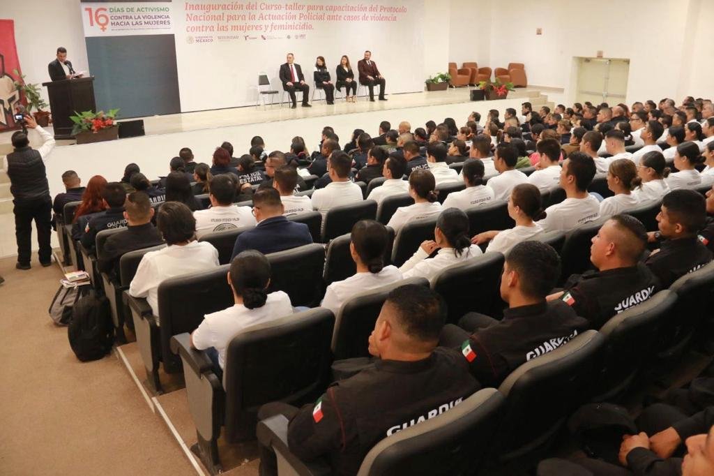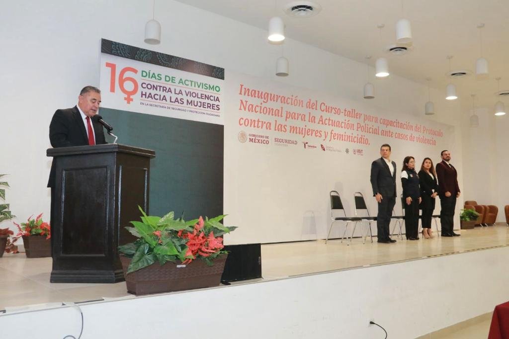 Cd. Victoria, Tamps., 4 de diciembre. – El presidente municipal Eduardo Gattás Báez participó en la inauguración de los trabajos del curso taller nacional para la capacitación del Protocolo para la Actuación Policial ante casos de Violencia contras las Mujeres y Feminicidios, que tendrá como sede Ciudad Victoria del 4 al 9 de diciembre.
