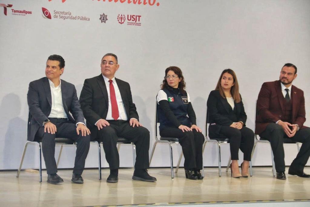 El evento realizado en las instalaciones de la Universidad de Seguridad y Justicia de Tamaulipas contó con la participación virtual de la Secretaria de Seguridad y Protección Ciudadana Rosa Icela Rodríguez Velázquez.