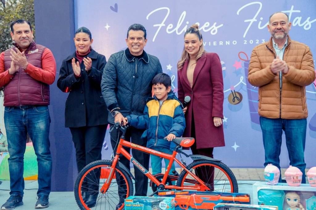 Posteriormente, la Presidenta y el alcalde dieron la bienvenida a los cerca de 800 asistentes, deseándoles a todos una muy feliz navidad, agradeciendo su presencia al festejo que fue preparado por todo el equipo DIF con mucho cariño. Así mismo, al término del mensaje, la Presidenta y el alcalde iniciaron con la entrega de premios, donde el primer juguete en ser entregado fueron pelotas, que eran lanzadas hacia el público y que las niñas y niños recibían con gran emoción.