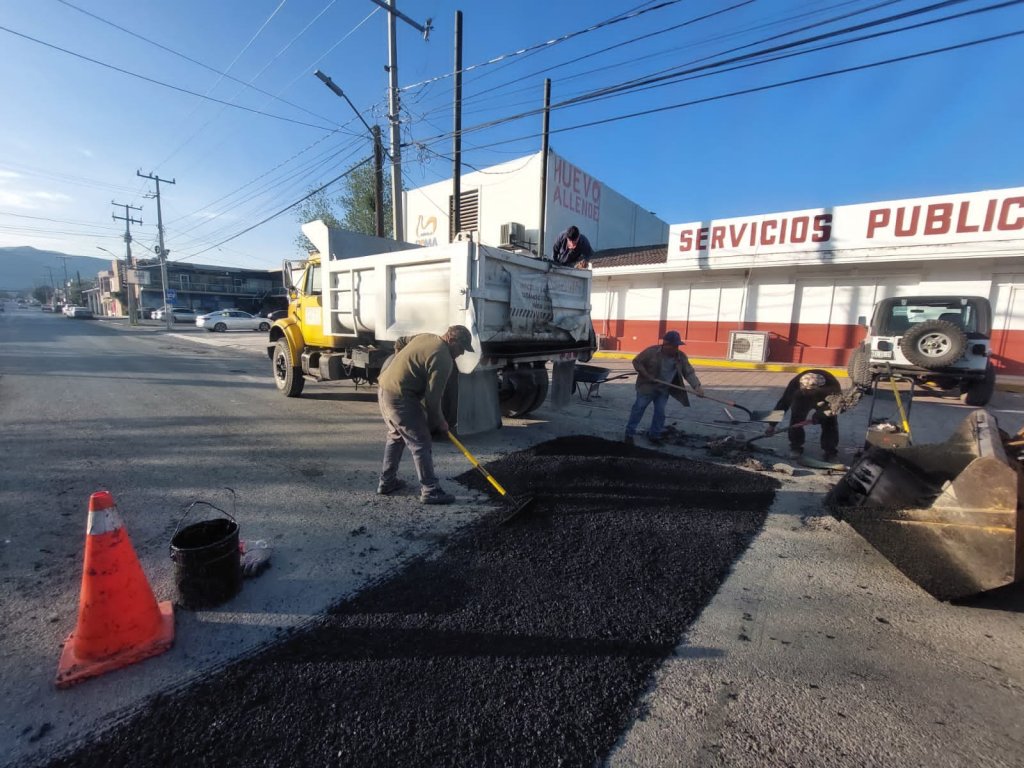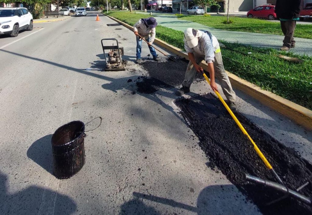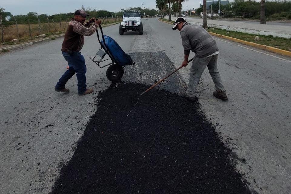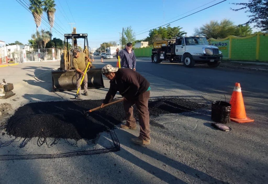 Cuadrillas del Departamento de Rehabilitación de Pavimentos de la Secretaría de Obras Públicas del Municipio, acudieron también a la Colonia La Paz para reparar tramos en la Av. Carlos Adrián Avilés, entre calle Revolución a Boulevard José Sulaimán Chagnón.
