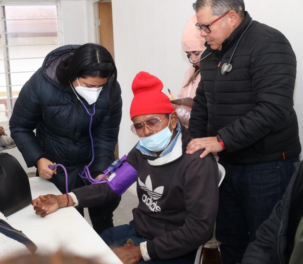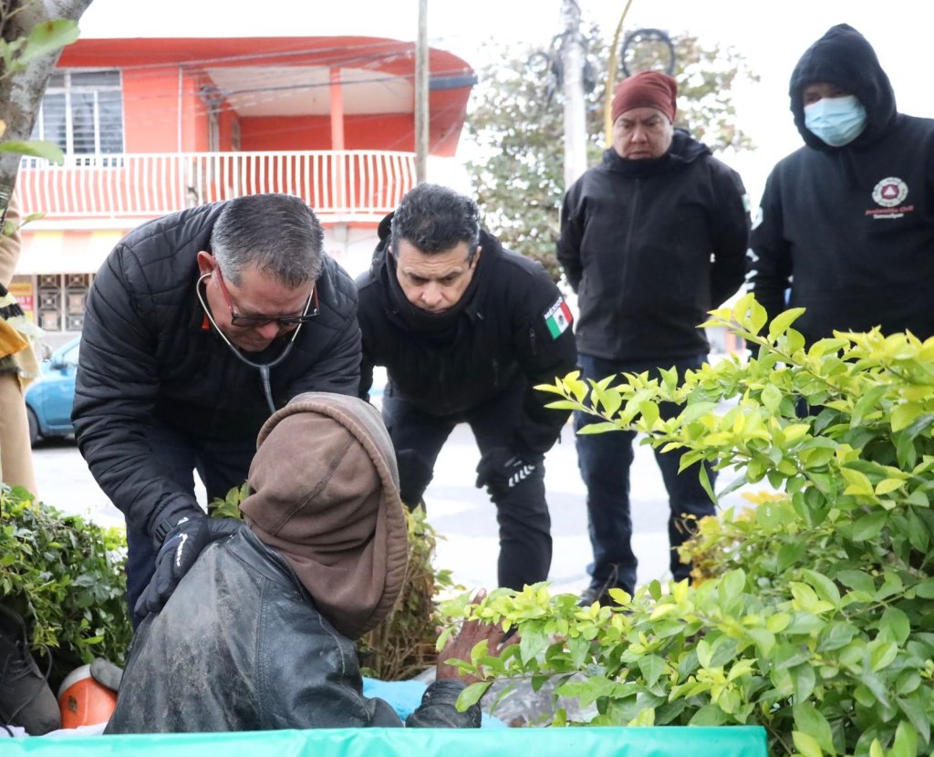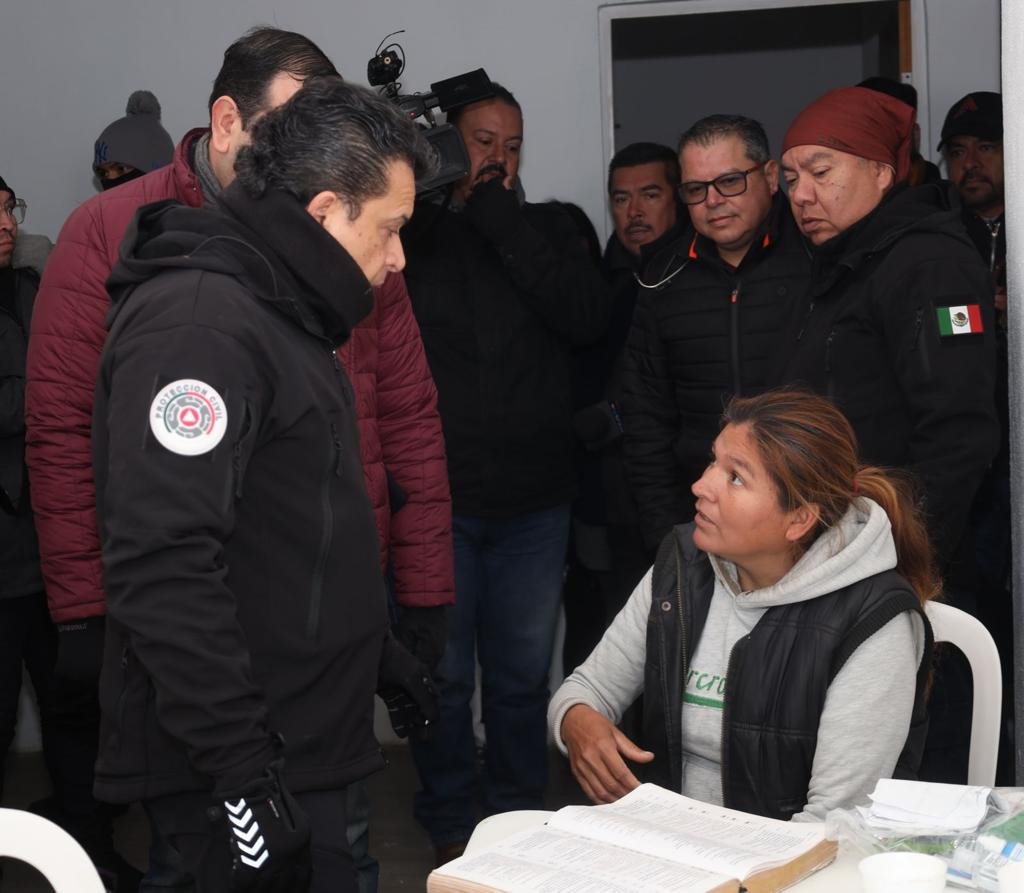 En compañía del coordinador de Protección Civil del Municipio Juan José Perales y personal del Centro Médico del DIF Victoria, supervisó la atención de alojo, abrigo y alimentación que se les brinda para protegerlos de la baja temperatura que se registra en la ciudad por paso del frente frío No. 27.