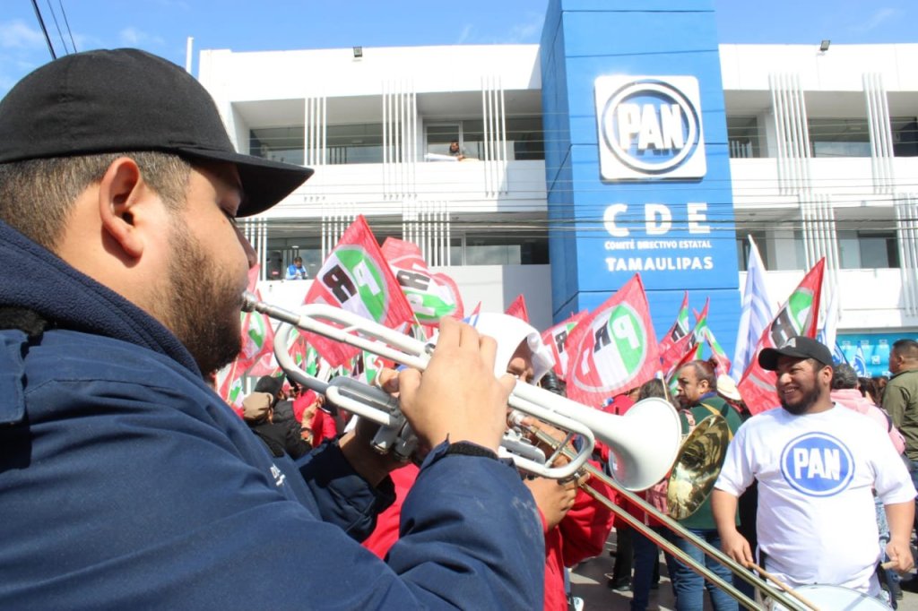 Simpatizantes del Partido Acción Nacional se dieron cita en el Comité Directivo Estatal de Tamaulipas desde temprana hora, para brindarle el apoyo a su Candidato Oscar Almaraz Smer quien se registra como Aspirante a Presidente Municipal de Victoria.