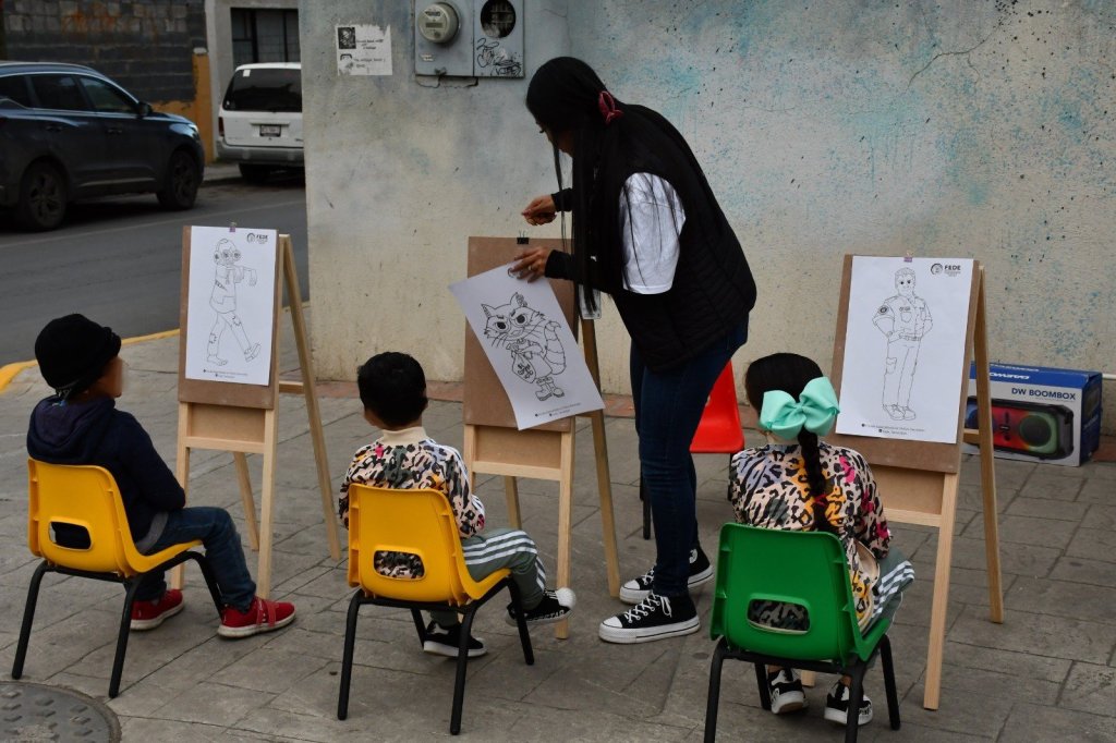 En la esquina de las calles Benito Juárez y Francisco Madero (17), el personal de la FEDE instaló estaciones de pintura para niños y niñas, quienes colorearon a los personajes de la campaña diseñada para promover la cultura de la denuncia de delitos electorales y la participación en la vida democrática. Asimismo, entregó material informativo a los más de 100 asistentes adultos que se acercaron.