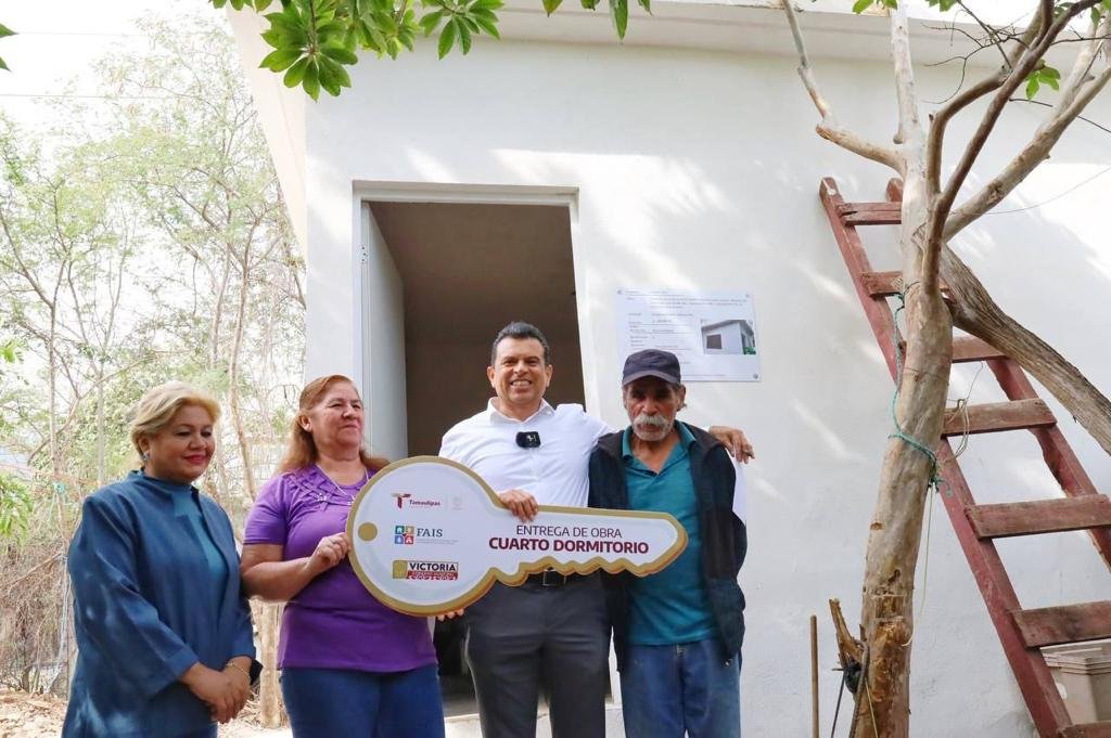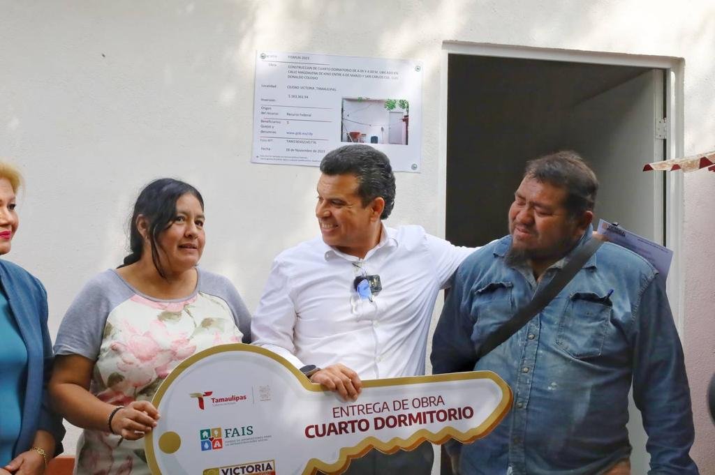 Cd. Victoria, Tamps., 28 de enero de 2024. – El presidente municipal de Victoria Eduardo Gattás Báez hizo entrega de llaves de cuartos dormitorio a tres familias más en situación vulnerable con el fin de dignificar la calidad de vida de sus integrantes.