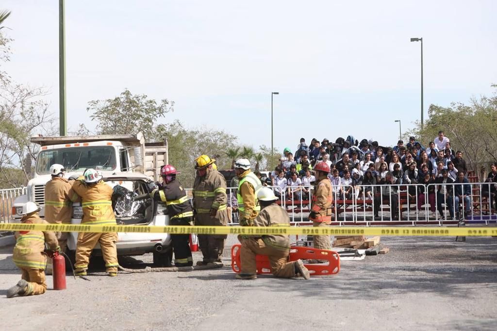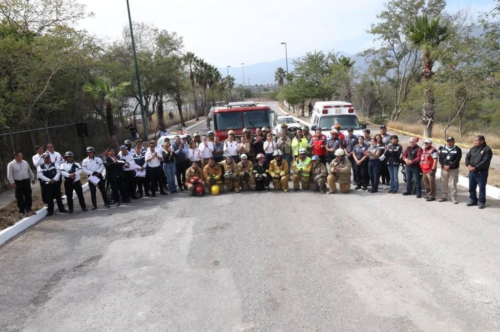 El simulacro, presidido por el presidente municipal de Victoria Eduardo Gattás Báez, y la presidenta del Sistema DIF Municipal, Lucy de Gattás, se realizó en la avenida continua del boulevard José López Portillo ante alumnos y personal docente de la Escuela Secundaria General No.5.