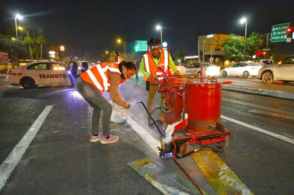 Cd. Victoria, Tamps., 31 de enero 2024. – El embellecimiento de la imagen urbana de Victoria no se detiene, en horas nocturnas personal de Servicios Públicos del Municipio realiza trabajos de marcación de señalética vial, limpieza de camellones y pinta de cordones.