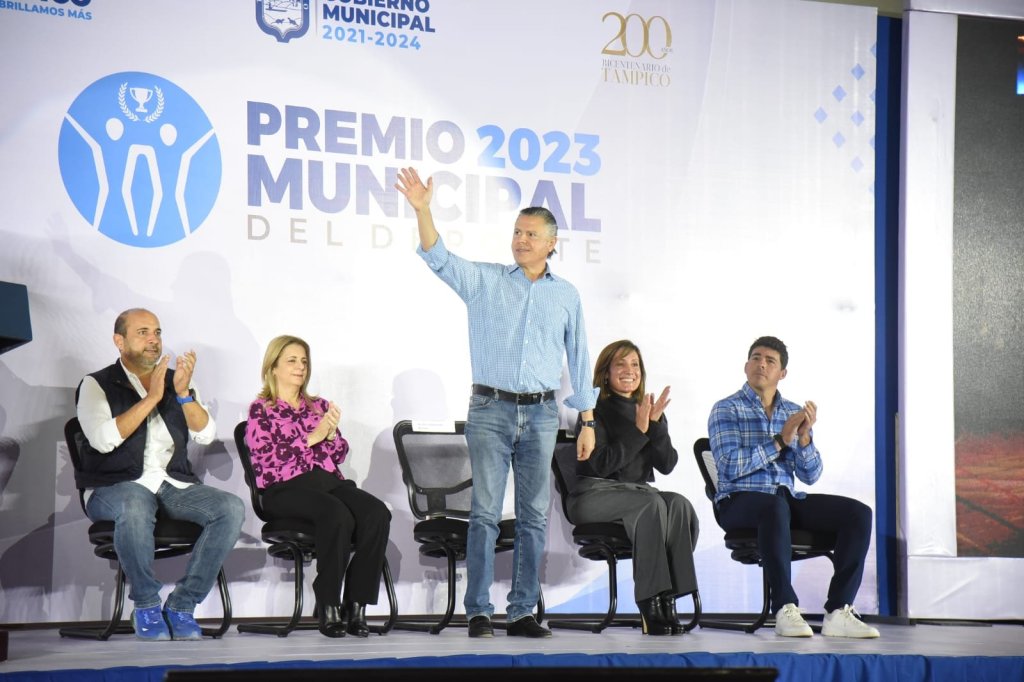 El Presidente municipal Chucho Nader encabezó este martes, en el Polideportivo Tampico, la entrega del premio municipal del deporte a los atletas que más destacaron durante 2023 en las diferentes categorías y disciplinas.
