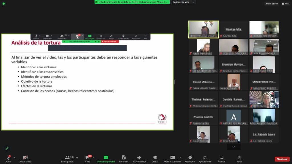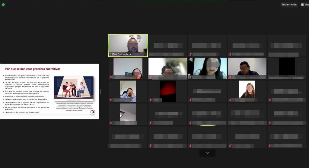 La Dirección General de Formación y Servicio Profesional de Carrera, en coordinación con el Instituto de Formación Profesional, organizó la capacitación con la finalidad de dar cumplimiento a la Recomendación del Diagnóstico Nacional sobre Tortura Sexual cometida contra las Mujeres Privadas de su Libertad en México, se llevó a cabo la actividad académica con el objetivo de analizar la sentencia Caso Atenco vs México, así como brindar la información suficiente acerca de los Principios de Méndez como parte fundamental durante la entrevista efectiva de investigación y recopilación de información permitiendo mejorar los resultados de las investigaciones, respetando en todo momento los derechos humanos de las personas entrevistadas, a efecto de dar una atención respetuosa y con respeto irrestricto de los derechos humanos.