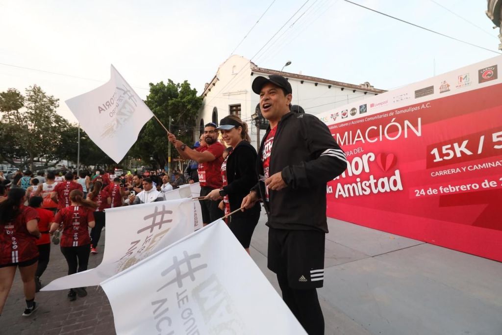 Cd. Victoria, Tamps., 24 de febrero 2024. – En un ambiente familiar y de gran convivencia deportiva, se realizó con éxito la carrera «Corre en Pareja» que encabezaron este sábado la presidenta del Sistema DIF Lucy de Gattás y el alcalde de Victoria Eduardo Gattás Báez en el marco de los festejos del Día del Amor y la Amistad.