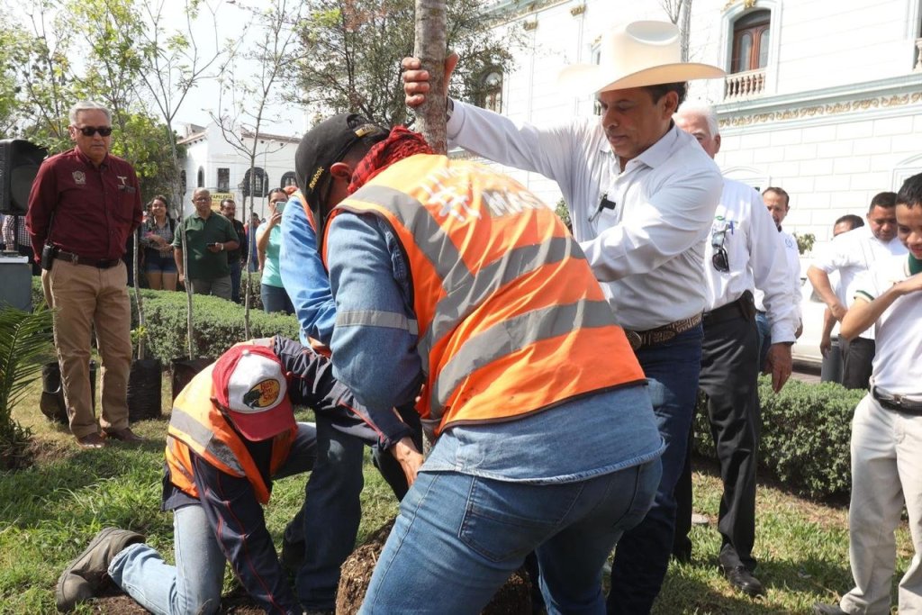 Cd. Victoria, Tamps., 29 de febrero. – El presidente municipal de Victoria, Eduardo Gattás Báez, en compañía de alumnos del CONALEP e integrantes de la Asociación Civil Tonantzin Tlalli, dio inicio a la campaña de reforestación 2024 en la avenida 17 Francisco I. Madero.