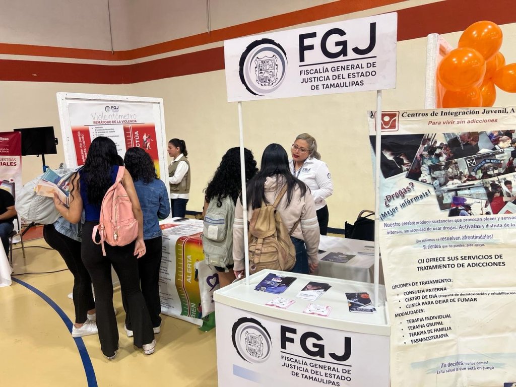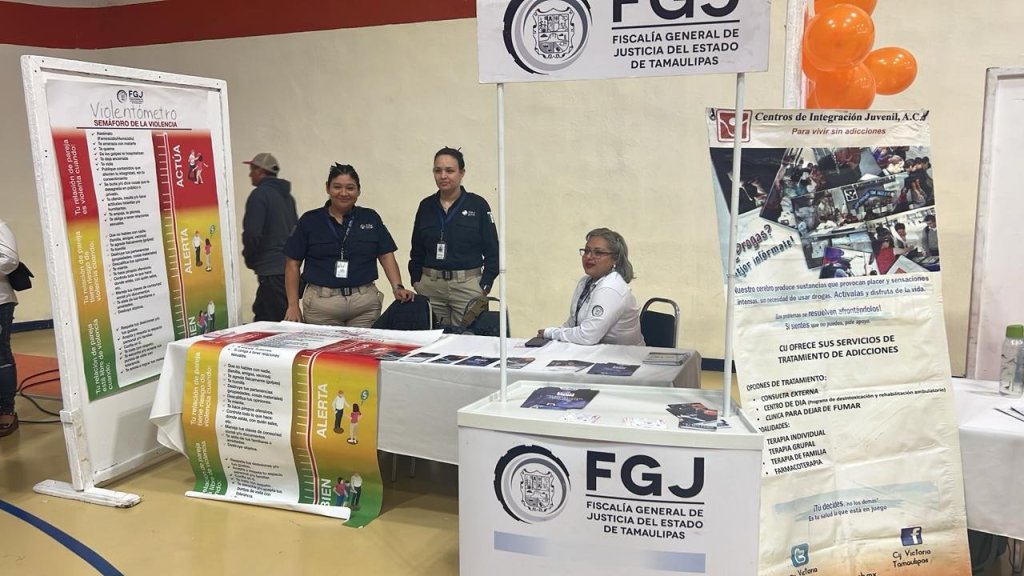 Ciudad Victoria, Tamaulipas.- La Fiscalía General de Justicia del Estado de Tamaulipas (FGJT) informa que, Personal de la Dirección de Atención y Servicio a la Comunidad, participó en la «Expo Juventud Universitaria» organizada por la Universidad Autónoma de Tamaulipas, con el propósito de informar a los jóvenes sobre los programas y servicios disponibles.