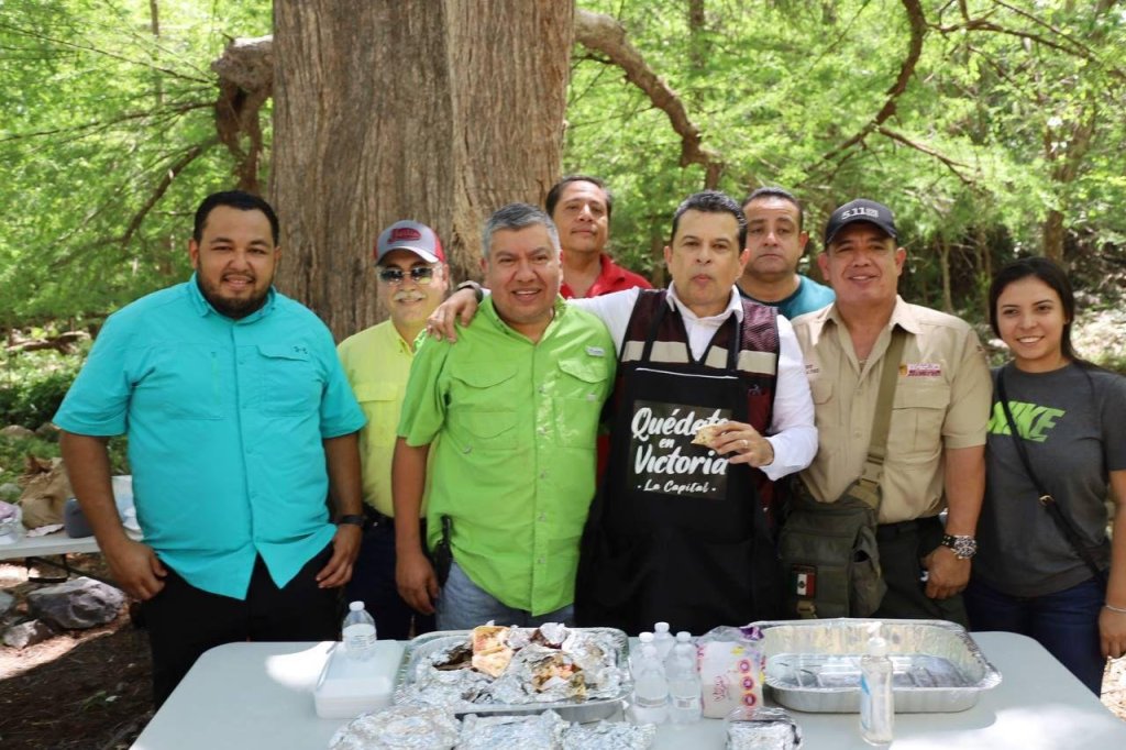 Cd. Victoria. – Para fomentar la convivencia familiar y disfrutar de la naturaleza, el presidente municipal de Victoria Eduardo Gattás Báez visitó con su esposa Lucy e hijos el parque ecoturístico Los Troncones, dónde se ofreció una parrillada de platillos preparados por personal de las áreas municipales para deleite de los visitantes.