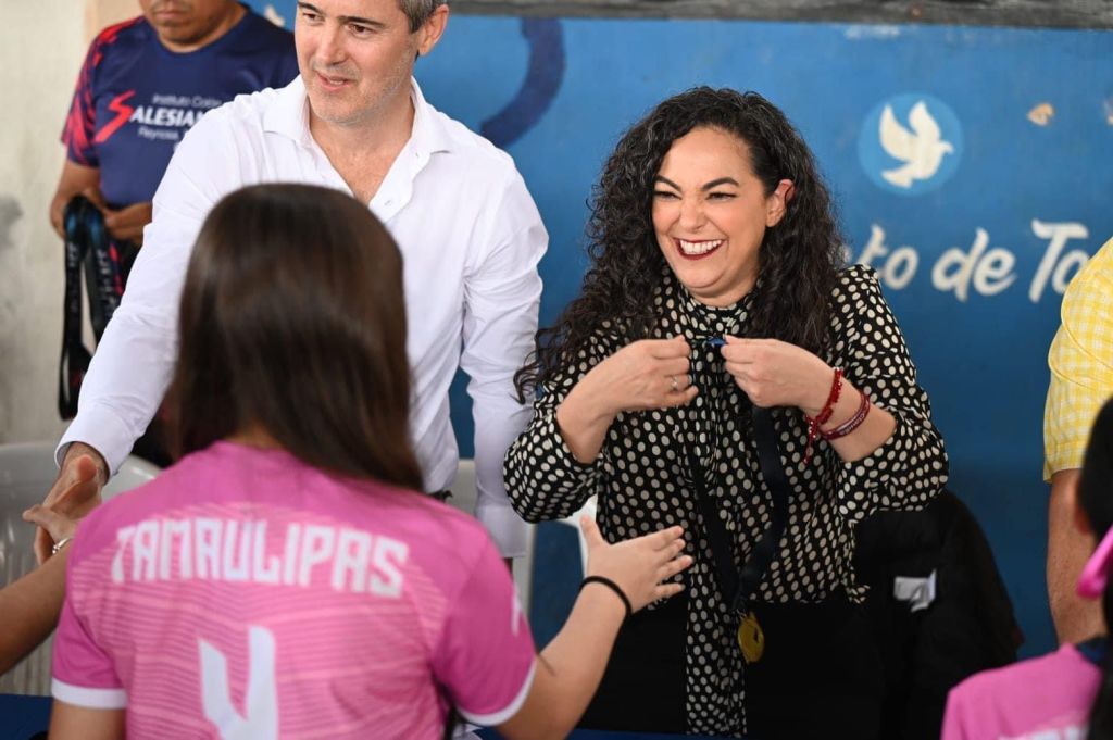 «Me da mucho gusto verlos este día y quiero compartirles que al igual que ustedes soy aficionada al deporte, incluso me desempeñé como directora de deportes de la UAT en Tampico, lo que he combinado a lo largo de estos años con una trayectoria de trabajo y humanista porque siempre me ha gustado apoyar a las juventudes y decirles que el deporte es una de las actividades más nobles que nos toca fortalecer y apoyar que estos semilleros deportivos puedan mantener un debido seguimiento para llegar al alto rendimiento».