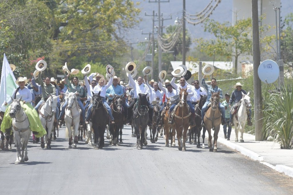 Al trote de los caballos por el Camino Viejo de las Flores y una vista de campos de caña, los jinetes comenzaron a sumarse a la cabalgata, guiada por la abanderada ocampense Ximena Montserrat Hierro Rodríguez.