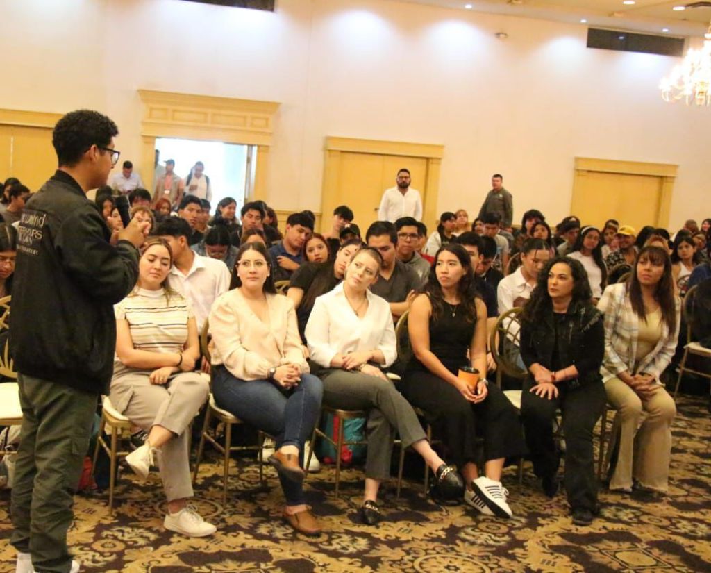Ante un nutrido grupo de estudiantes de nivel profesional, en su mayoría listos para incorporarse al sector productivo, Olga Sosa expuso el compromiso -que al igual que su compañero de fórmula JR-, tienen con las juventudes Tamaulipecas, propuestas alineadas a los 100 puntos del plan de gobierno que encabeza la Doctora Claudia Sheinbaum y que garantizan el desarrollo y bienestar de las actuales y futuras generaciones.