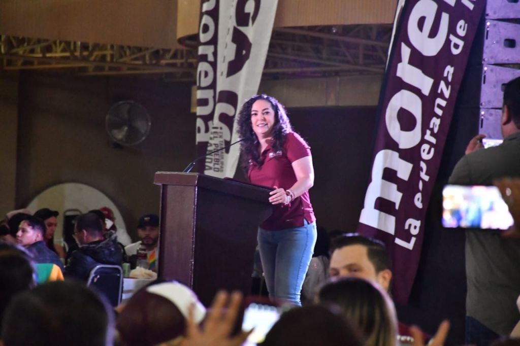 «Queremos pedirle a todas y a todos, su total compromiso con Morena, fortalezcamos y formemos nuestros comités para alentar el voto del pueblo y defender la voluntad popular; con la Dra. Claudia Sheinbaum a través del Proyecto de Nación queremos construir el segundo piso de la transformación y eso significa más derechos y menos privilegios; más bienestar, más educación, y más justicia, con la Dra. Claudia desde el Senado vamos a apoyar, los dos programas de bienestar: más becas escolares universales para niñas, niños y adolescentes y los apoyos para mujeres a los 60 y hasta los 64 años obtengan un apoyo bimestral».