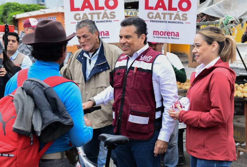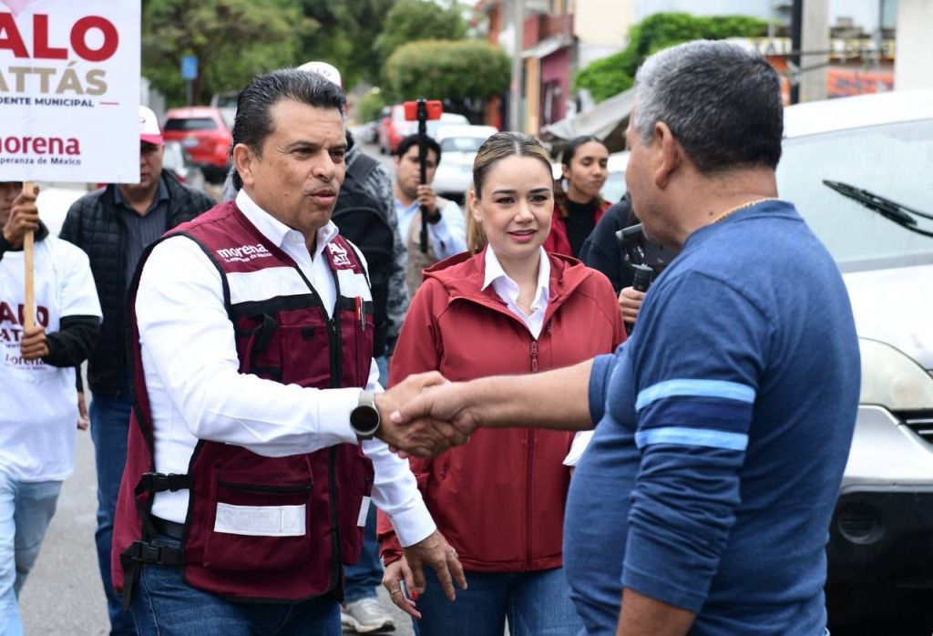 De la mano de su esposa Lucy de Gattás, continuó su caminata hasta llegar a la colonia Unidad Modelo donde un grupo de vecinos ya lo esperaba para recibirlo y agradecer el rastreo y nivelación de calles, envío de pipas para abasto de agua y apoyos alimentarios.