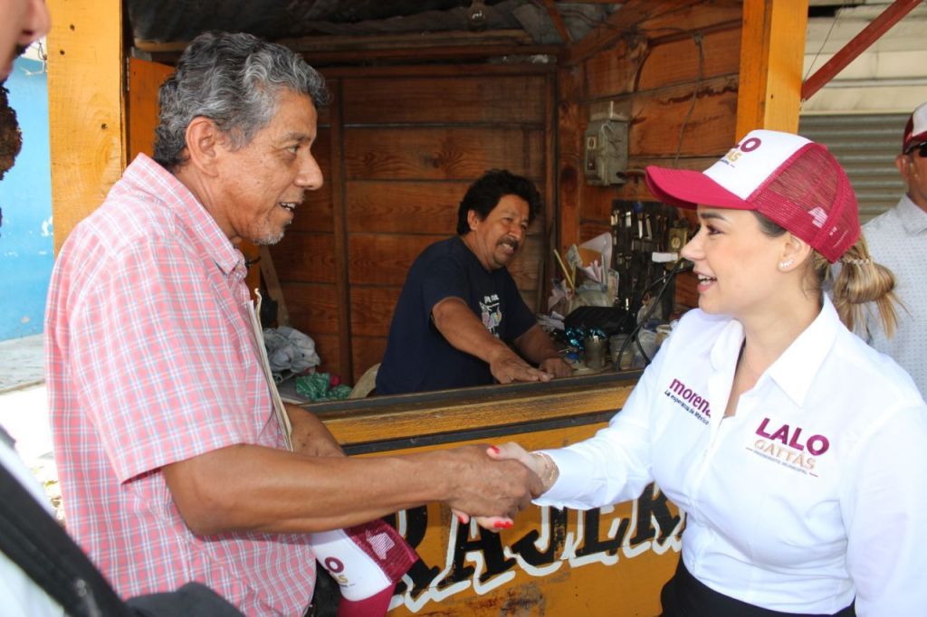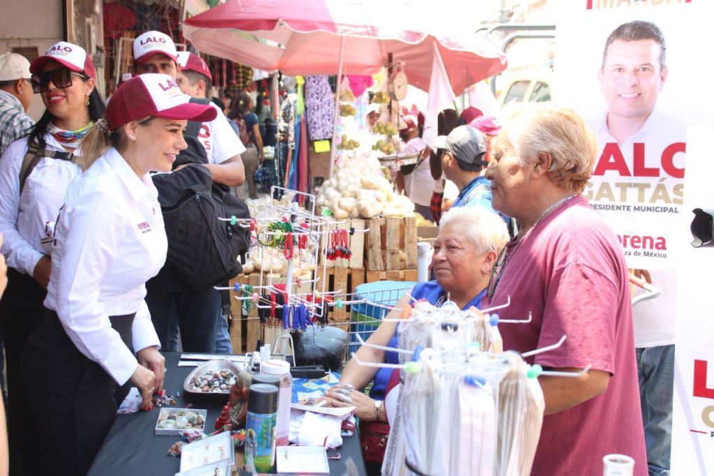 Por la mañana, se hizo presente en el mercado Argüelles a través de su esposa Lucy de Gattás quién recorrió cada uno de los locales para llevar a comerciantes y consumidores el mensaje y propuesta de gobierno del candidato de Morena para seguir transformando la ciudad y mejorando la calidad de vida de sus habitantes.