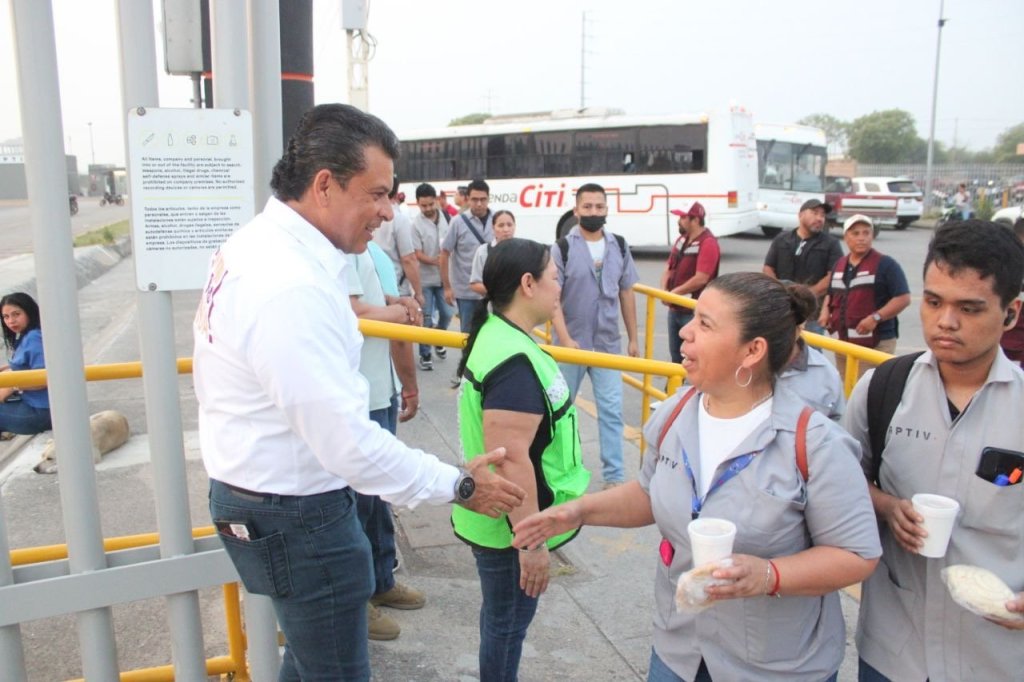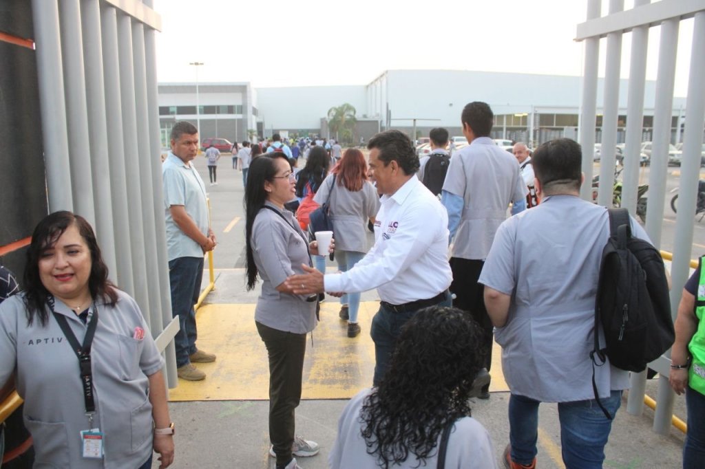 En punto de las 5:30 de la mañana, llegó al acceso principal de la planta para saludar y escuchar inquietudes; resultando de esa interacción la solicitud de reforzar en el entorno de su centro de trabajo la estrategia de seguridad y alumbrado público para inhibir delitos que los afectan.