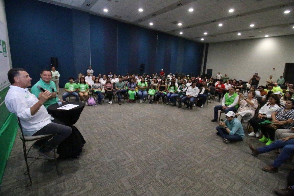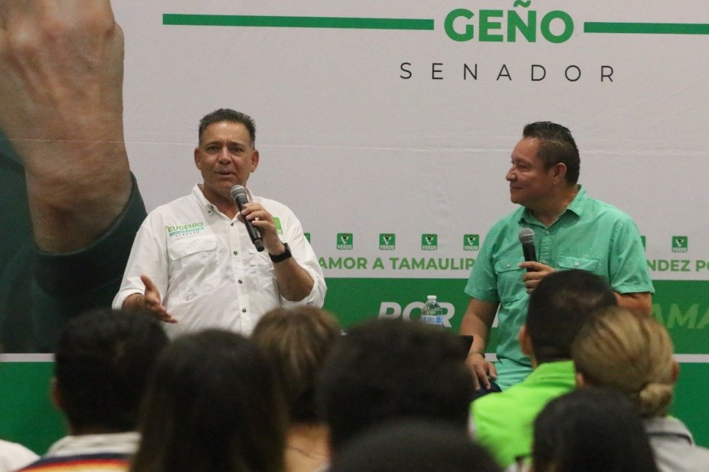 Tampico.- Con micrófono abierto y cara a cara, el candidato del Partido Verde al Senado de la República, Eugenio “Geño” Hernández Flores, participó en un foro de jóvenes, donde, además de escucharlos y plantear sus propuestas en diversos temas, les hizo ver la importancia de su participación en la política.