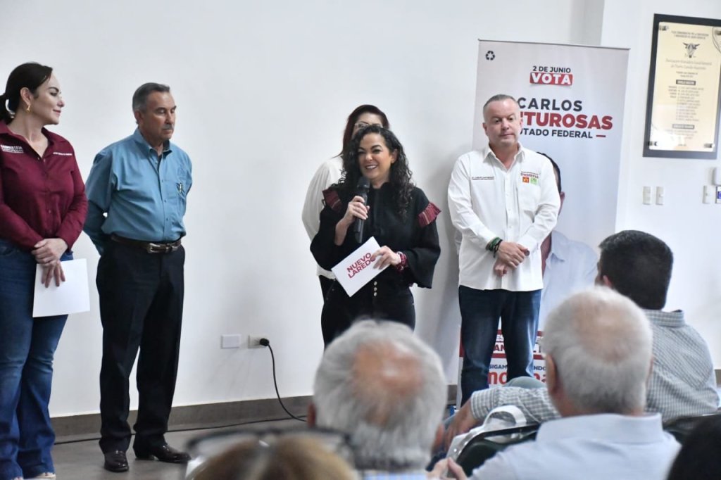 La candidata solicitó el apoyo de los integrantes de la asociación ganadera de Nuevo Laredo con quienes dijo trabajará de la mano, al igual que sus compañeros Carmen Lilia y Carlos Canturosas así como Ana Laura Huerta, por que los aliados de la Cuarta Transformación apoyan el proyecto de nación de la doctora Claudia Sheinbaum Pardo.