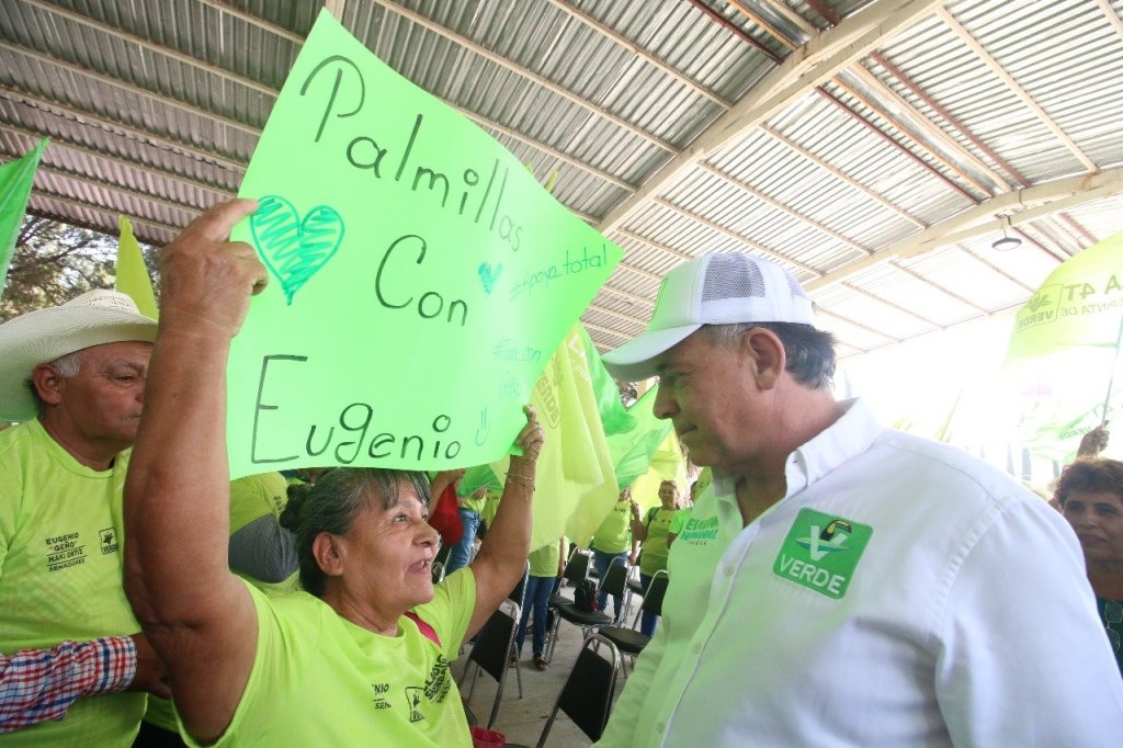 La Geñomanía contagió también a Palmillas, donde el abanderado del Verde recibió muestras de agradecimiento por la construcción del camino a San Vicente que se trató de un compromiso cumplido cuando fue gobernador, por lo que le dijeron, el voto en este municipio será para Eugenio y Maki al Senado de la República.