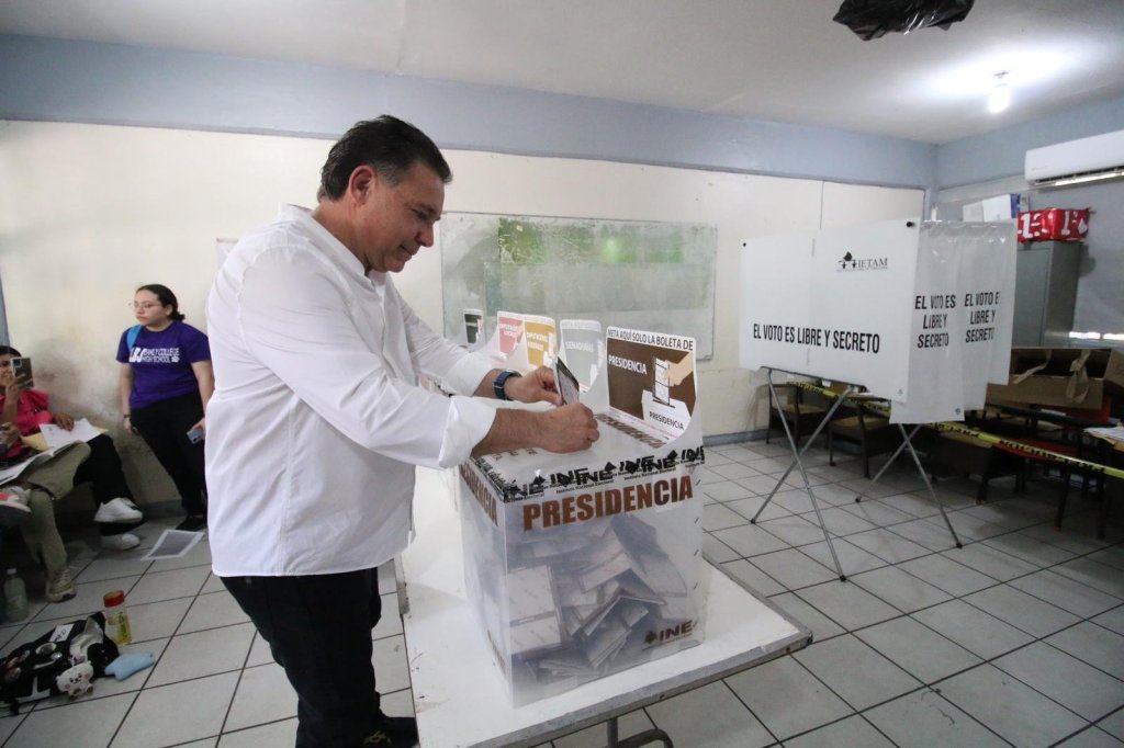 Ciudad Victoria. – En la casilla de la sección 1569, Eugenio Hernández Flores emitió su voto.
