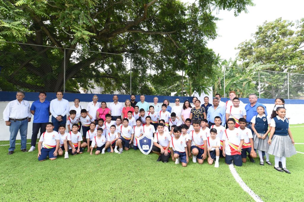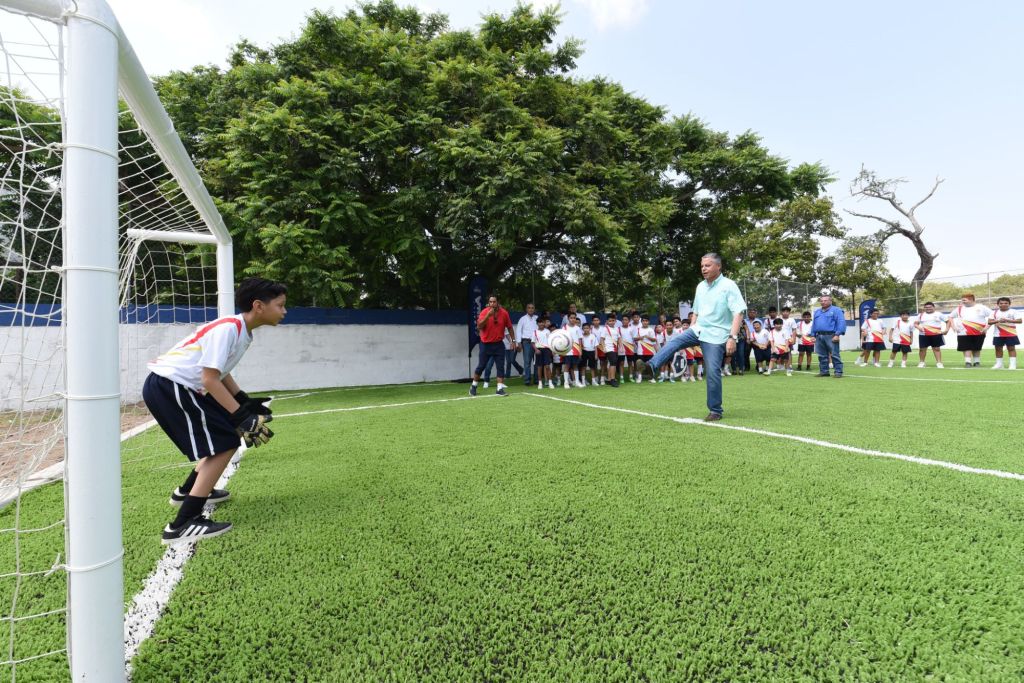 «Me da mucho gusto venir a entregar esta moderna cancha de pasto sintético, que responde al compromiso que asumimos hace unos meses con maestros, alumnos, y padres de familia, de dotar esta escuela con instalaciones deportivas seguras y funcionales para elevar la calidad formativa de los estudiantes», expresó.