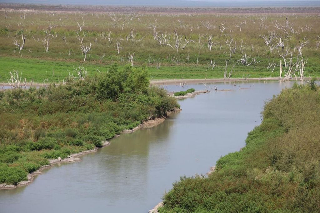 A pie y en lancha, recorrieron el tramo que conecta el canal de llamado a la obra de toma, donde, como medida preventiva ante la escacés de lluvias, se proyecta la instalar un sistema de bombeo flotante que garantice un tirante de agua adecuado en el punto de succión de las bombas y bajar los niveles de turbidez del agua.