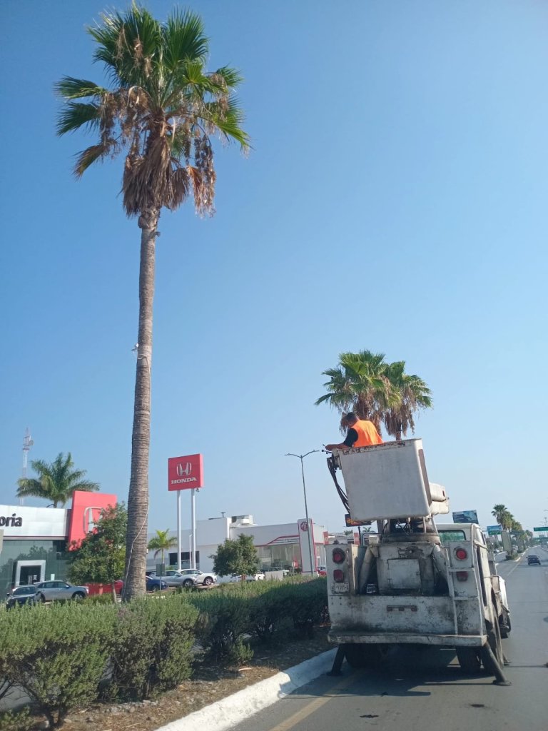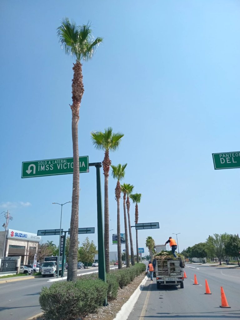 La Secretaría de Servicios Públicos Municipales ha fortalecido las acciones de chapoleo, poda y retiro de maleza en las áreas verdes de la zona centro, colonias Enrique Cárdenas, Ampliación Industrial, fraccionamiento San José y avenidas principales como la Calzada Luis Caballero, boulevard Luis Echeverría y Eje vía Lázaro Cárdenas.