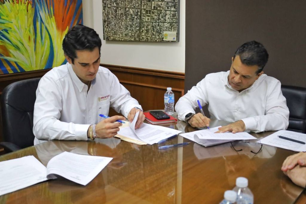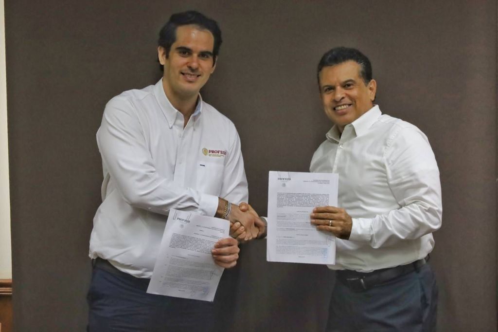 El acuerdo, firmado por el presidente municipal Eduardo Gattás Báez y el delegado de la PROFECO Manuel Leal Villarreal, incluye la reubicación del módulo de atención a la zona comercial de la ciudad para promover la equidad jurídica y relación entre consumidores y provedores.