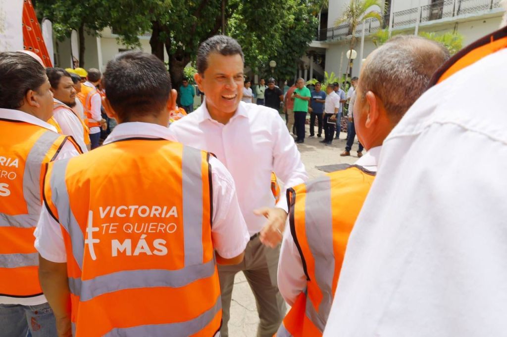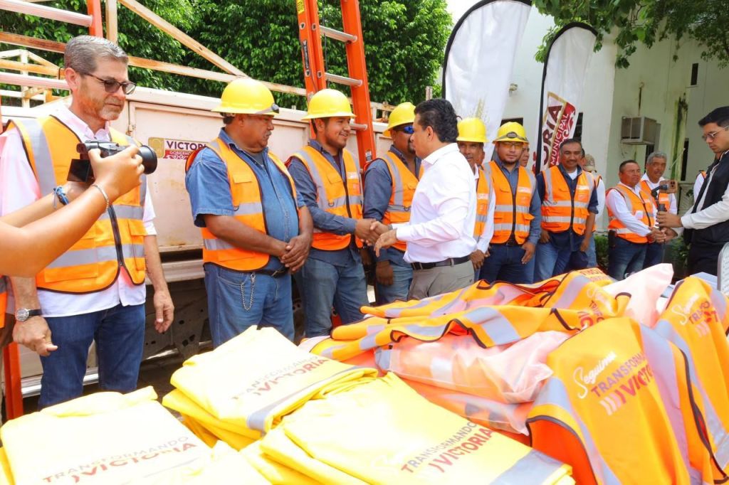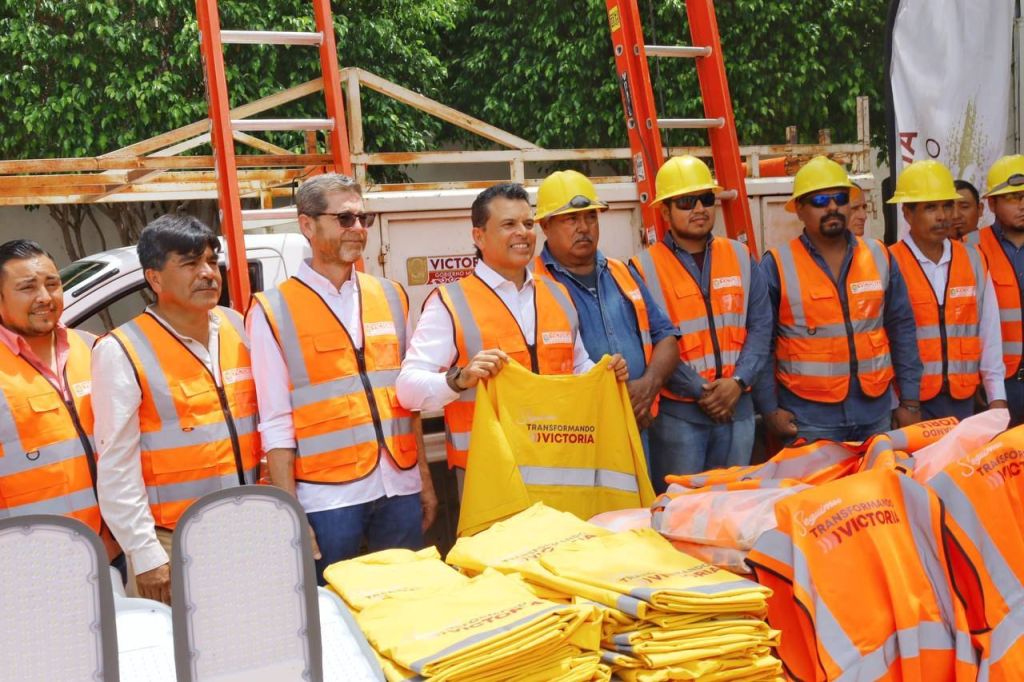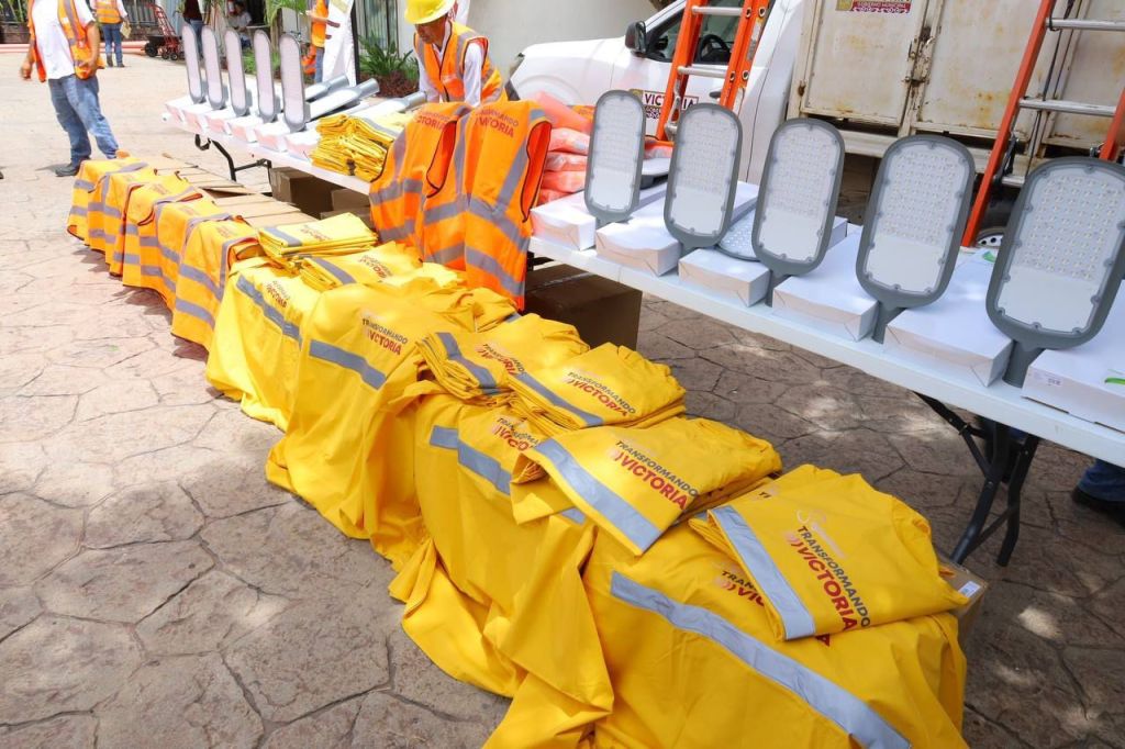 En el patio central de la presidencia municipal y con una inversión superior a un millón 700 mil pesos, el alcalde de Victoria entregó al personal del Departamento de Alumbrado Público 500 luminarias tipo LED, así como chalecos, impermeables y escaleras.