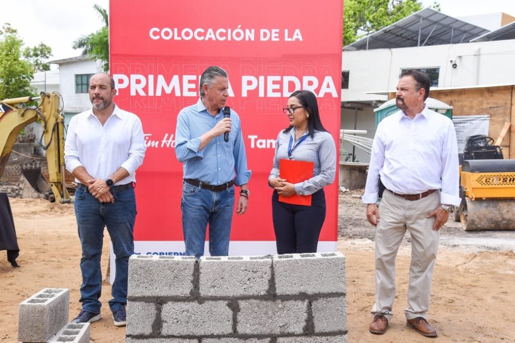 En Tampico hemos sentado las bases que permiten mayor inversión, desarrollo económico, empleo y bienestar social; y lo hemos logrado recuperando la paz y la seguridad; modernizando la infraestructura urbana, ampliando los atractivos turísticos y mediante la prestación de servicios públicos de calidad; aseguró el Presidente municipal Chucho Nader al colocar la primera piedra de la franquicia canadiense Tim Hortons en la Avenida Ejercito Mexicano.