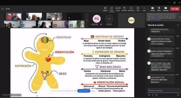 La actividad académica fue impartida, por el Maestro Jorge Huerta Viescas, integrante del comité de las diversidades afectivo sexuales de la Comisión Estatal de Derechos Humanos del Estado de Chihuahua, con el objetivo de fomentar la cultura de los derechos humanos y no discriminación, el análisis de la terminología LGBTIQ+, reforzar el glosario de las diversidades sexogenéricas, así como los instrumentos nacionales e internacionales de los que el estado mexicano es parte en materia de igualdad de género, concientizando a las y los Agentes del Ministerio Público para brindar una atención con equidad y no discriminación.