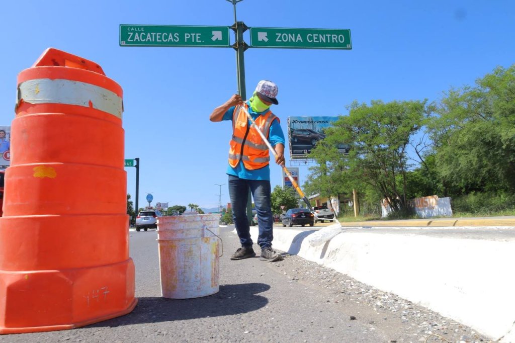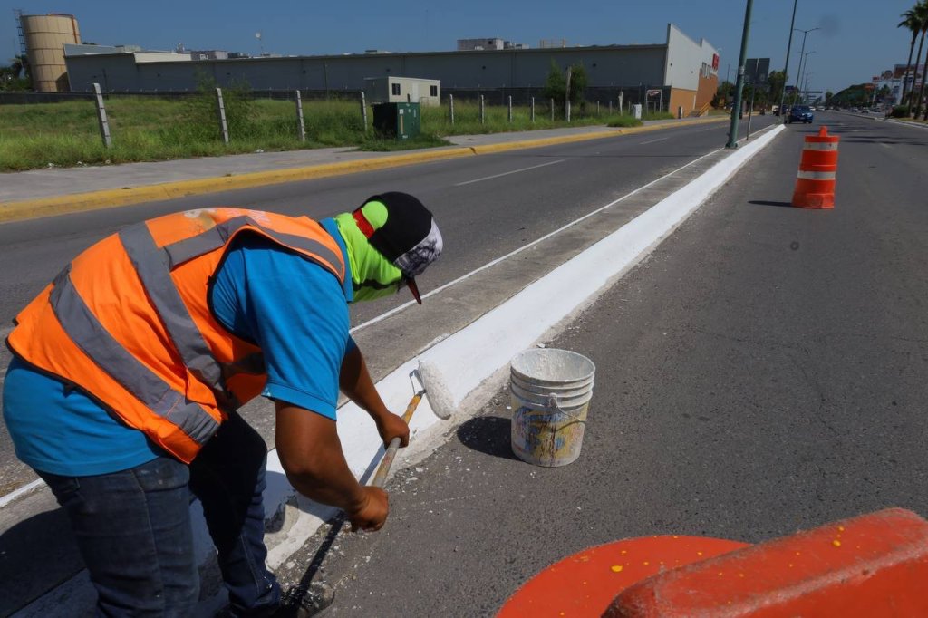 Cd. Victoria, 16 agosto 2024. – Mejorando la imagen y movilidad urbana de Victoria y su Barrio Mágico, la Secretaría de Servicios Públicos del Municipio trabaja de manera permanente en el embellecimiento de áreas y espacios públicos con la poda, reforestación, retiro de basura y pinta de camellones viales.
