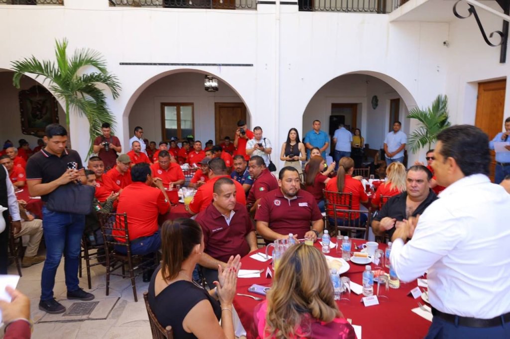 Al festejo del Día del Bombero se sumaron el Secretario del Ayuntamiento Hugo Reséndez Silva, la Secretaría de Finanzas María Guadalupe de los Reyes Acosta y el Director de Seguridad Tránsito y Vialidad Livio César Flores Rodríguez.