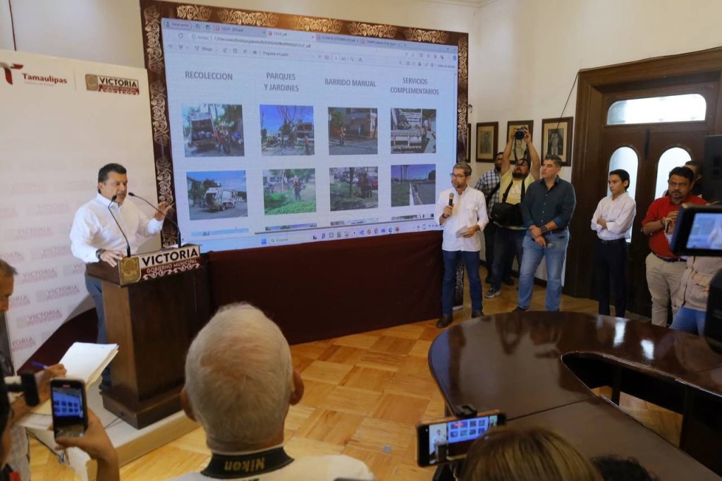 En la conferencia, Marco Cantú Mercado, secretario de Servicios Públicos indicó que se realizaron 619 acciones destacando la descacharrización conjunta con la Jurisdicción Sanitaria N° 1 en el combate al dengue con 242 acciones y la recolección de 2,695 toneladas basura en la última semana.