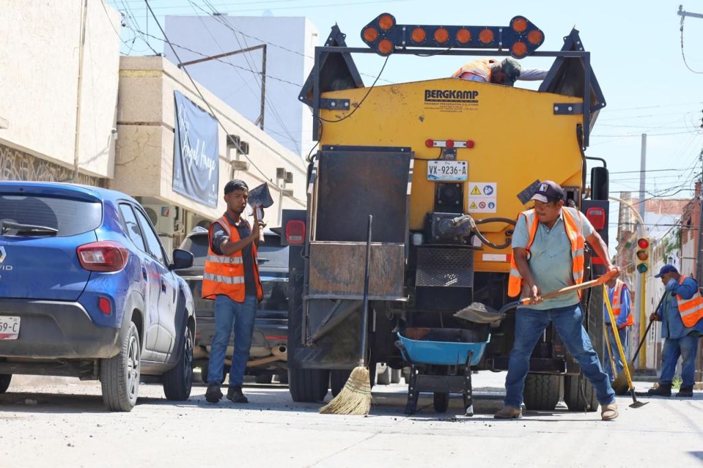 Cuadrillas del Departamento de Rehabilitación de Pavimentos realizaron trabajos de limpieza, en hoyos y zanjas detectados de la calle 22 al 20, para mejorar la superficie de rodamiento, circulación vial y evitar daños en vehículos automotrices.