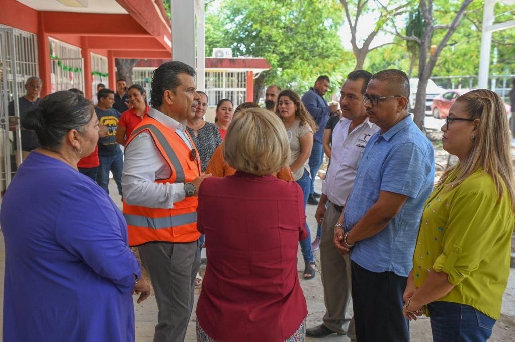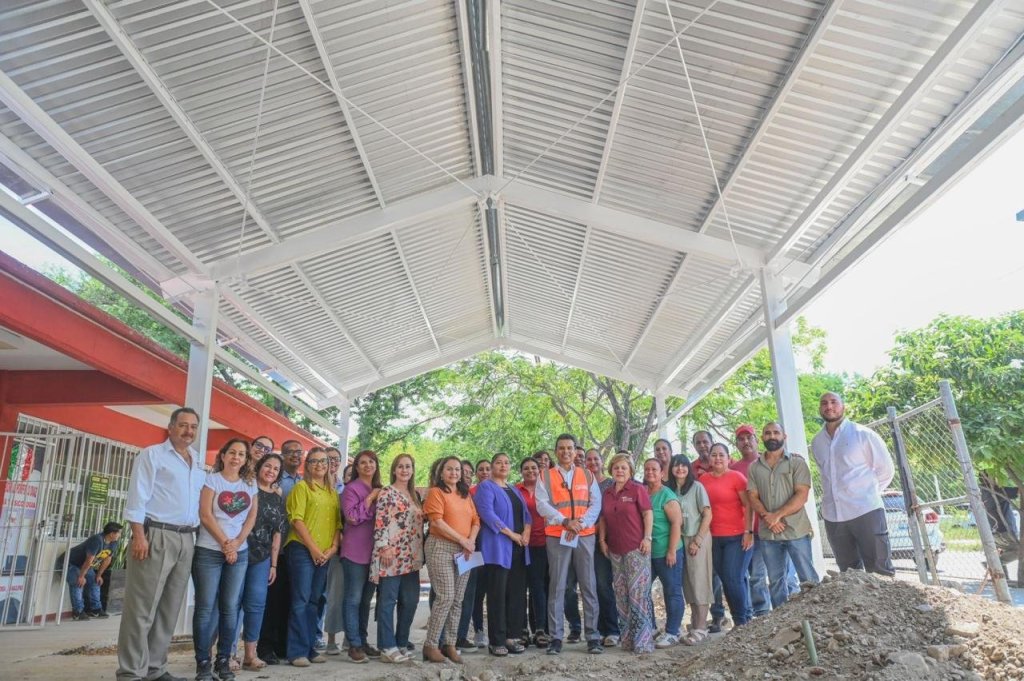 En su visita al Centro de Atención Múltiple -CAM- “Porfirio Díaz” de la colonia Mainero, entregó a directivos y padres de familia una barda perimetral de 45 metros lineales y constató el avance de la construcción de una techumbre de 72 M2 que beneficiará en sus actividades educativas y formativas a 191 alumnos.