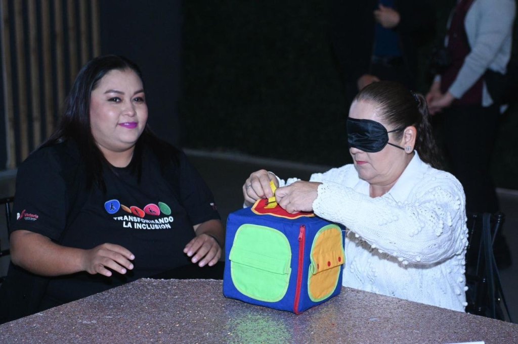 A través de la dinámica «Llegar a la Meta», Lucy Rodríguez de Gattás, junto a integrantes del DIF y Gobierno Municipal, participó en juegos inclusivos y actividades de autoevaluación, así como en la conferencia de experiencia vivencial impartida por Dillan Puebla.
